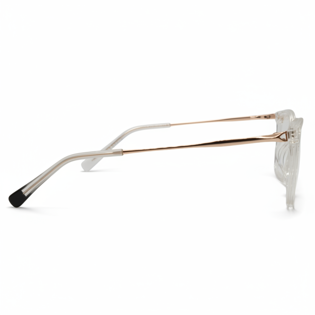 A armação em acetato transparente é sinônimo de versatilidade — perfeita para quem busca um óculos leve, discreto e cheio de estilo para o uso diário.