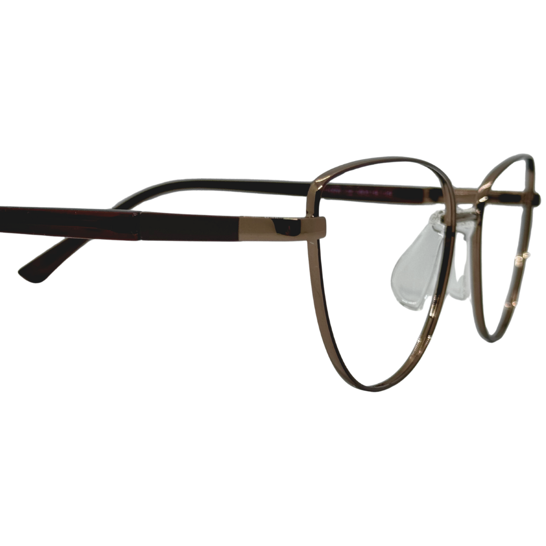 Com estrutura em metal refinado, a armação gatinho na cor cobre adiciona um toque de luxo e modernidade, realçando o rosto com delicadeza e estilo.