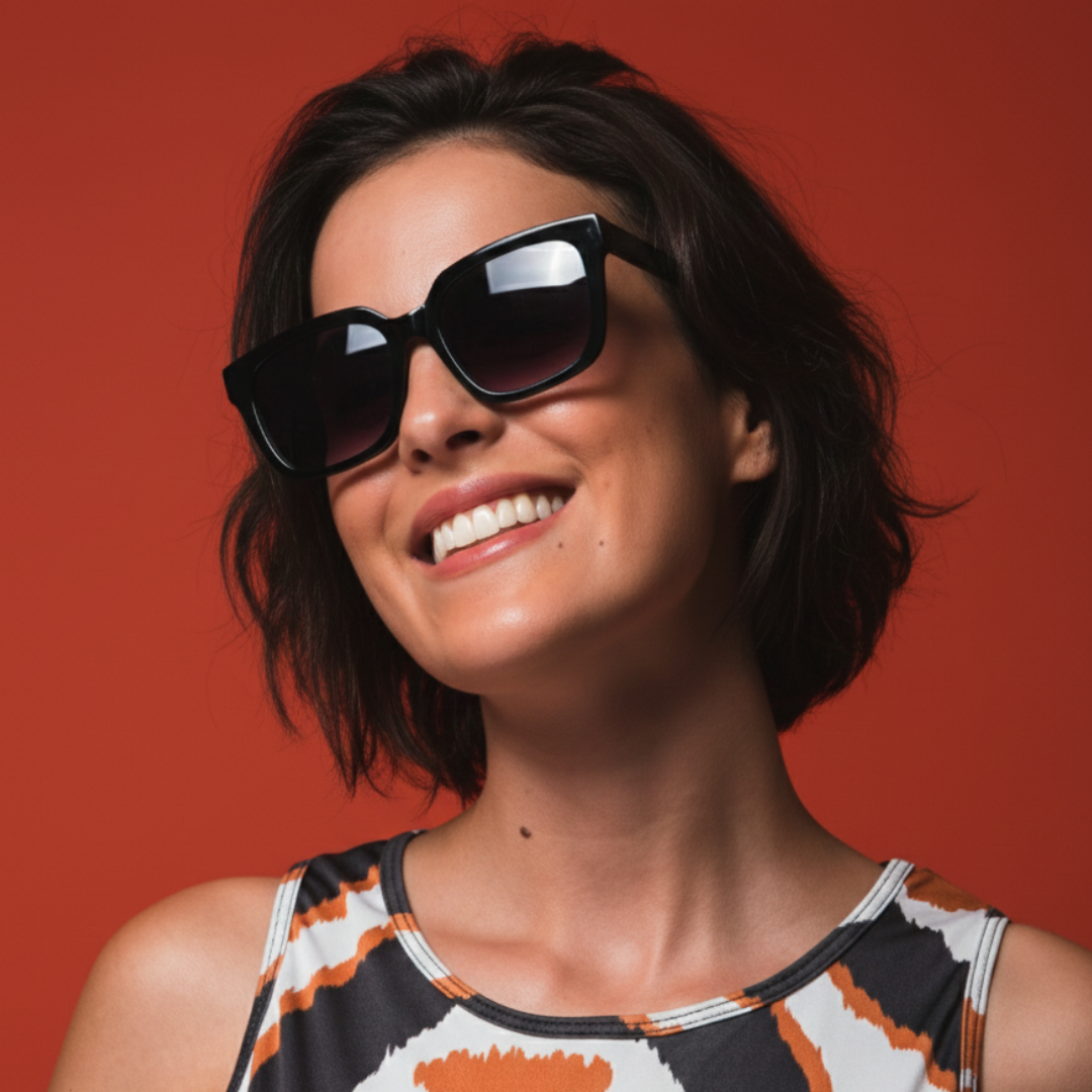 O modelo Lecce combina o design clássico com um toque moderno. Sua armação quadrada em acetato preto traduz elegância e presença, ideal para mulheres que buscam estilo atemporal e versatilidade no dia a dia.