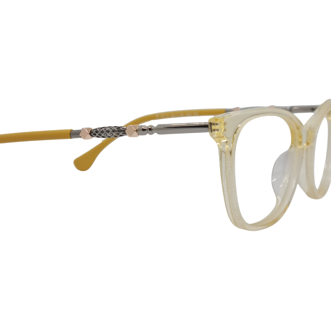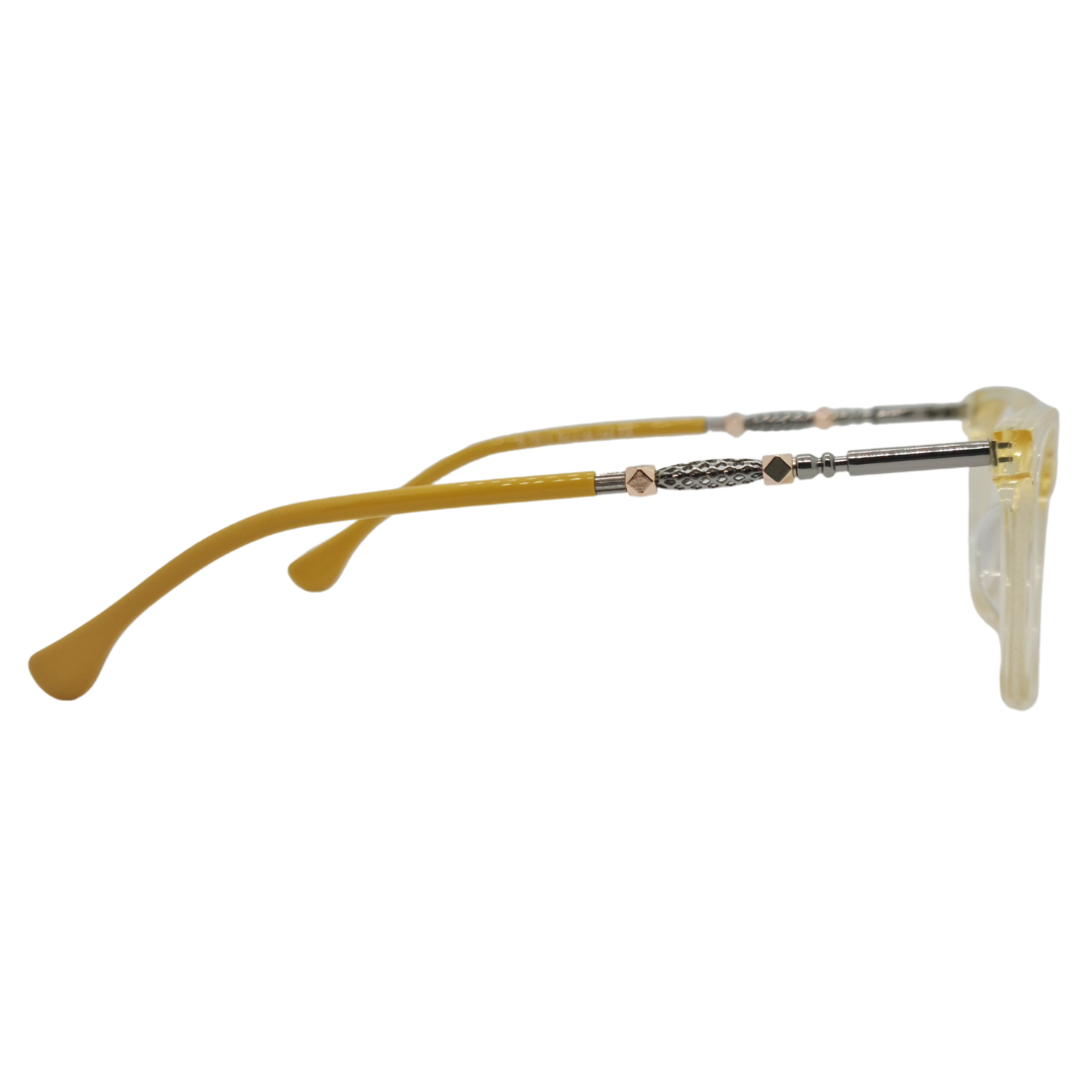 Com estrutura em acetato resistente, a armação quadrada na cor amarelo transparente traz um toque sofisticado e descontraído, perfeito para quem deseja um visual leve e atual.