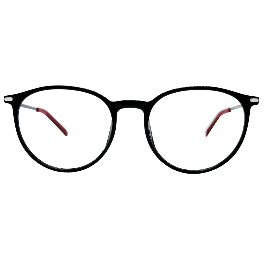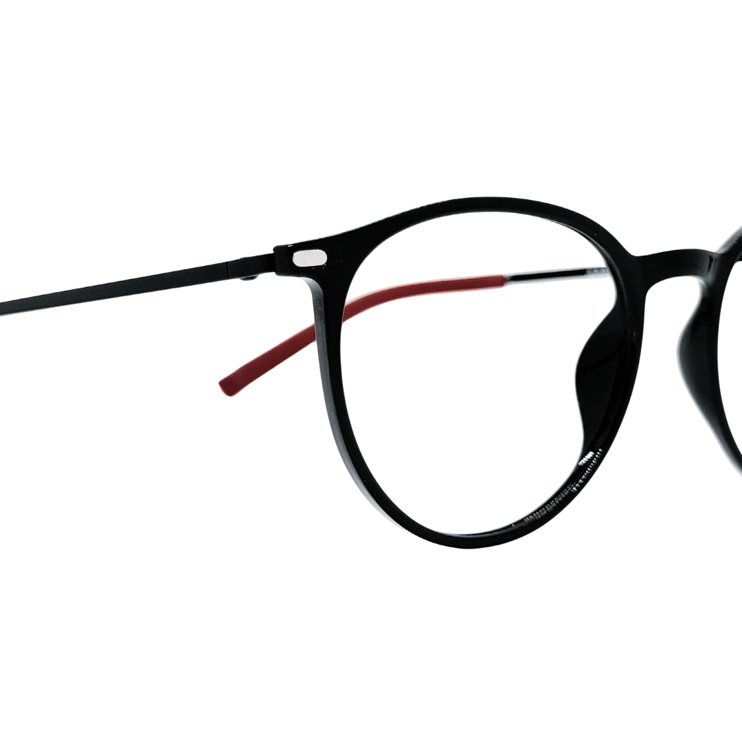 Com estrutura em acetato resistente, a armação redonda nas cores preto e vermelho é marcante, versátil e perfeita para quem busca estilo unissex diferenciado.