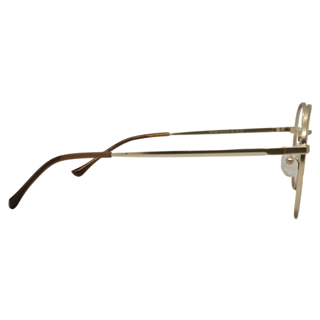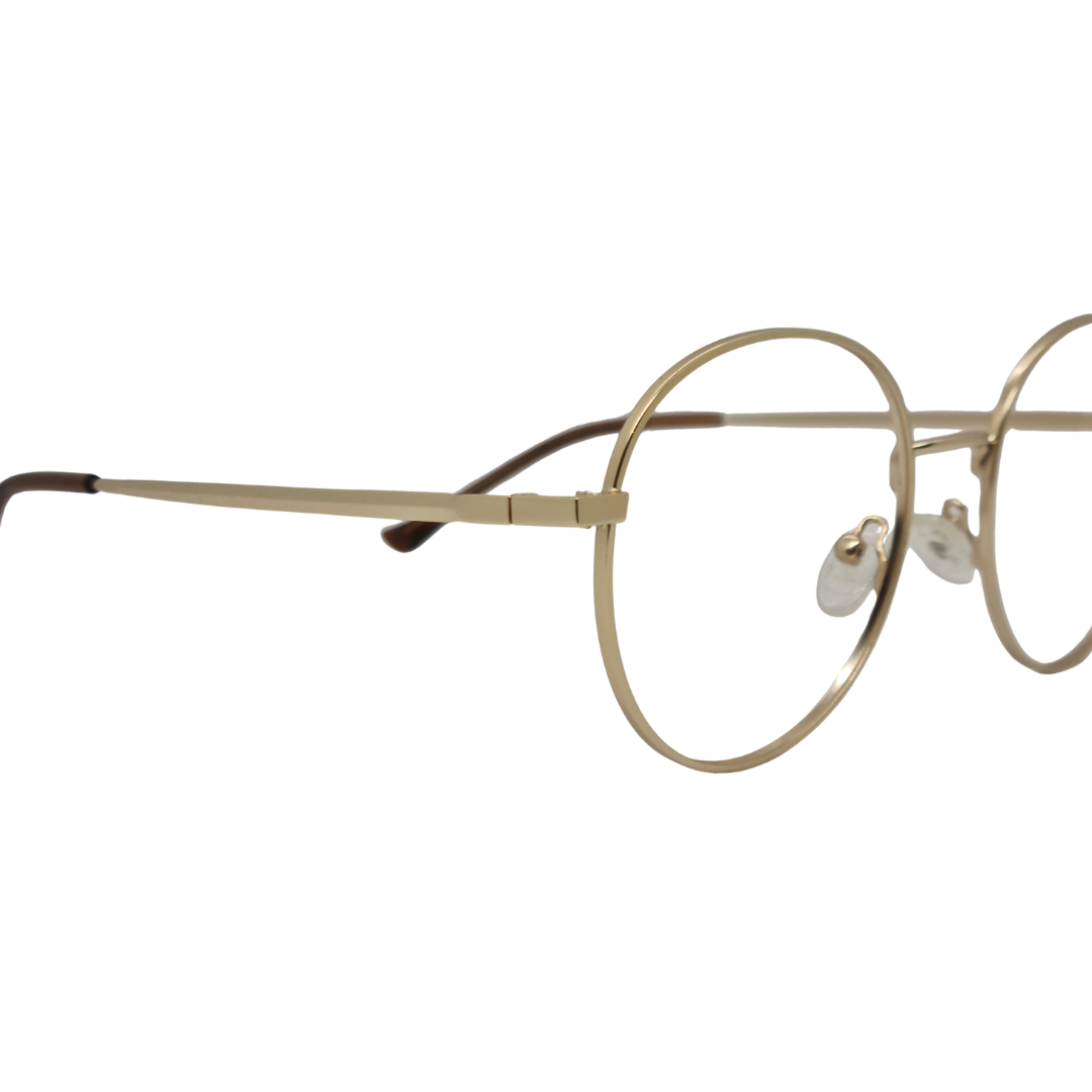Com estrutura em metal dourado de alta qualidade, a armação redonda combina elegância e sutileza, ideal para quem deseja um óculos atemporal e versátil.