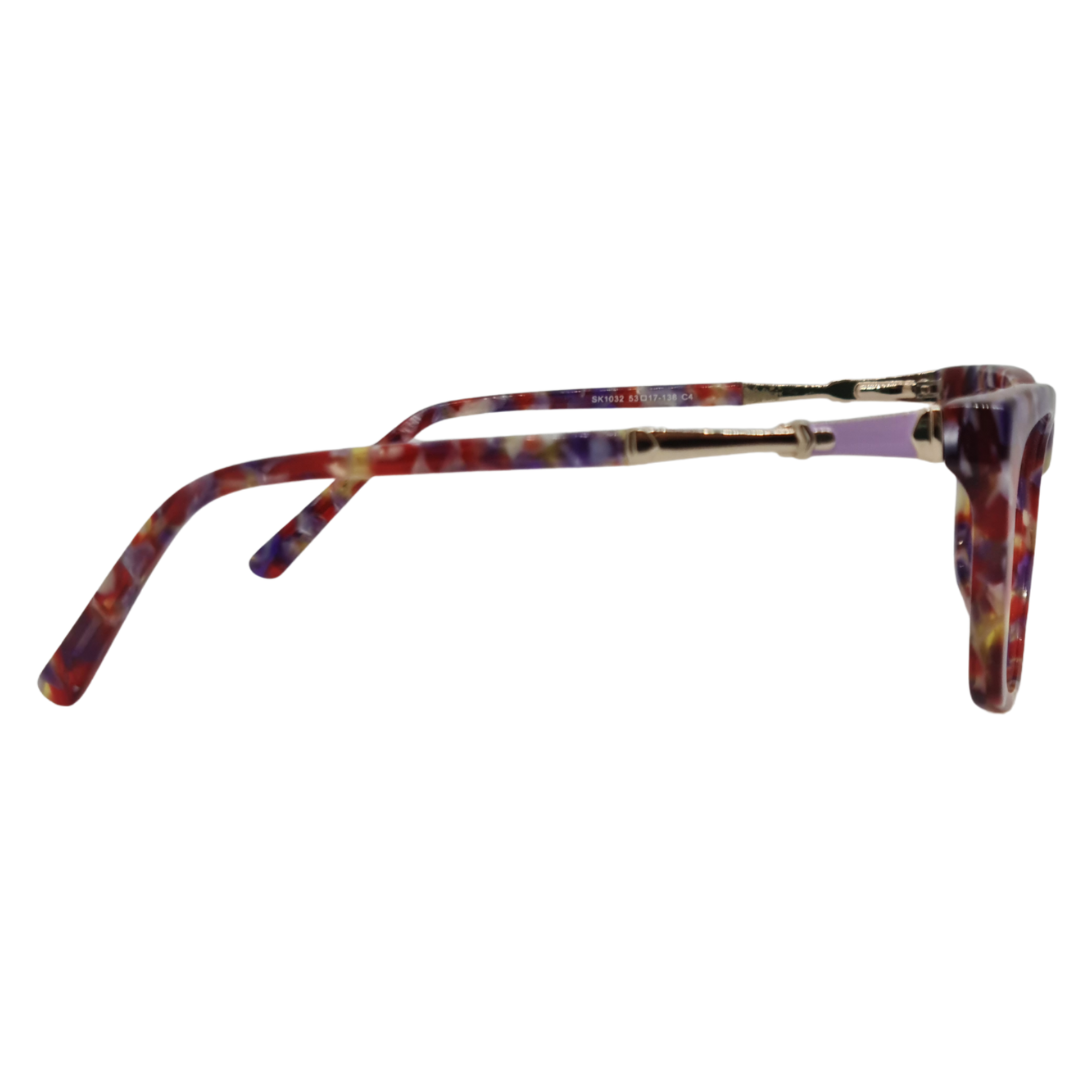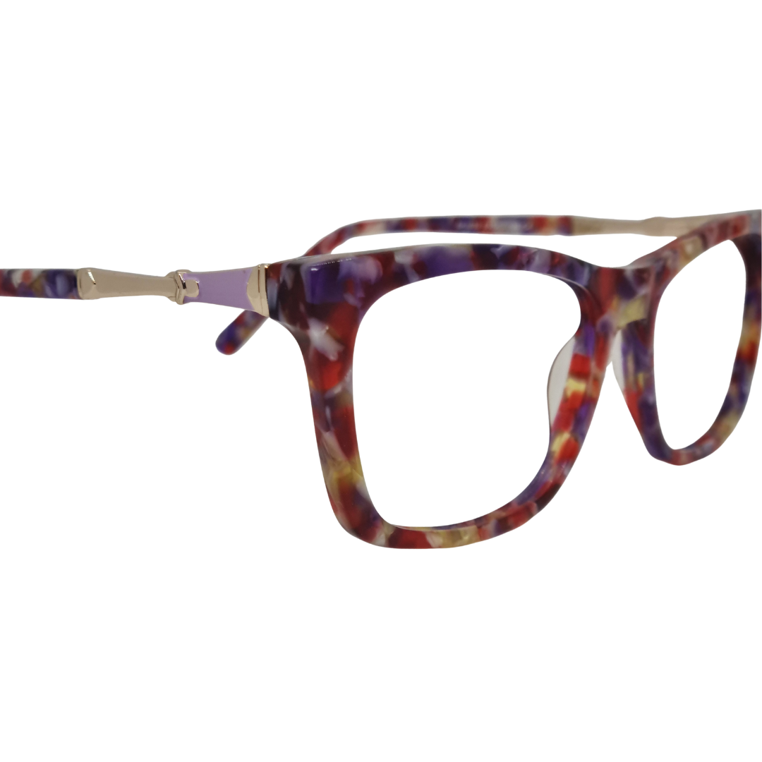 Com estrutura em acetato resistente, a armação quadrada colorida traz um visual moderno e alegre, ideal para quem gosta de ousar com elegância.