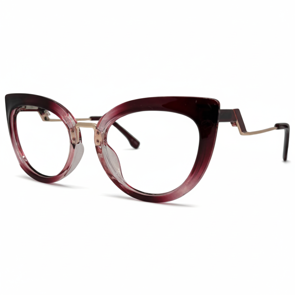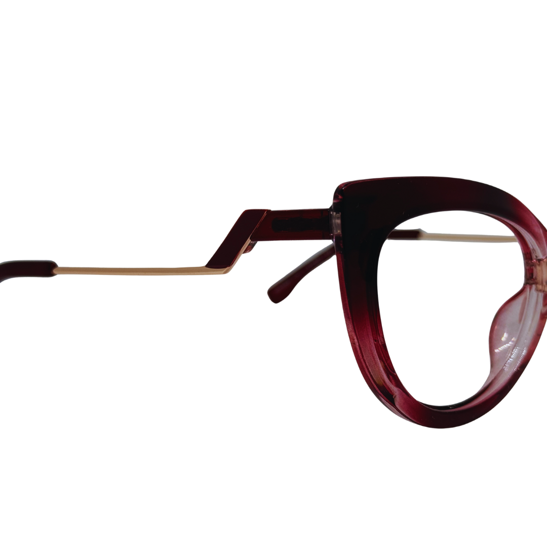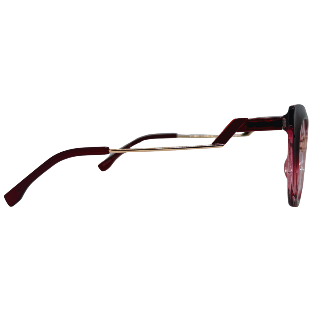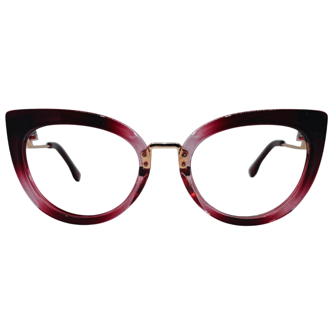 O modelo Flora traz um toque de elegância e feminilidade com sua armação em acetato vinho degradê, unindo conforto, estilo e leveza em um único design.