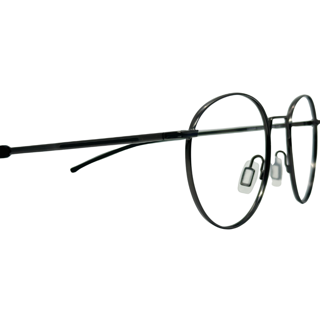 Com estrutura em metal com hastes em fibra de carbono, a armação redonda na cor grafite combina leveza, modernidade e resistência em um design unissex sofisticado.