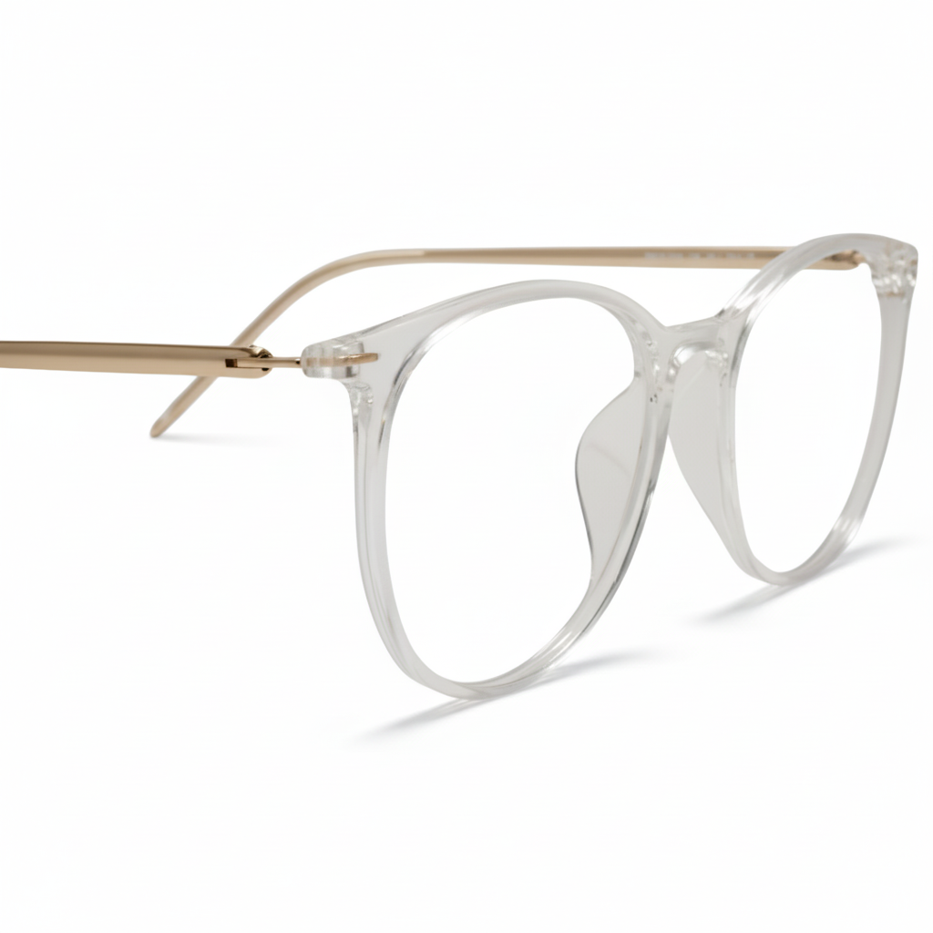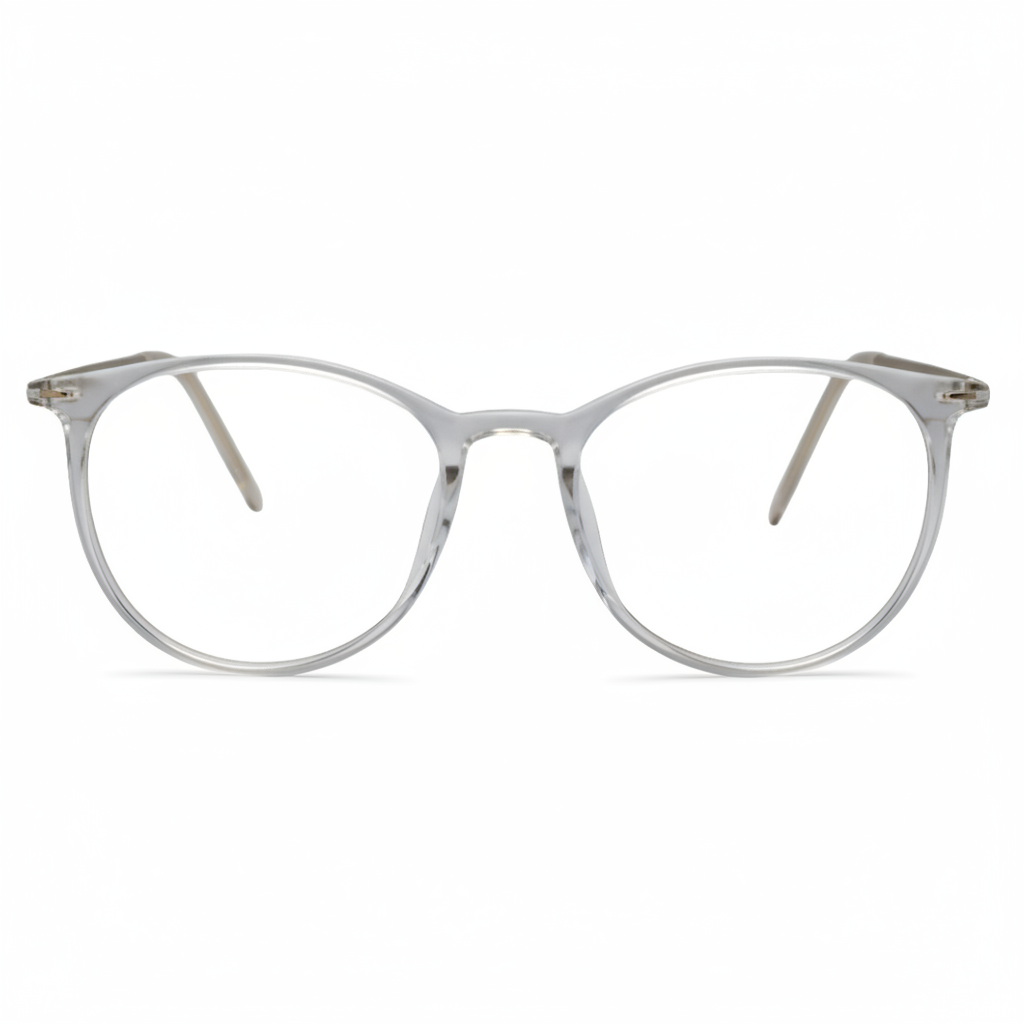 Com estrutura em acetato resistente e design redondo na cor transparente, é a escolha perfeita para quem busca leveza, elegância e modernidade.