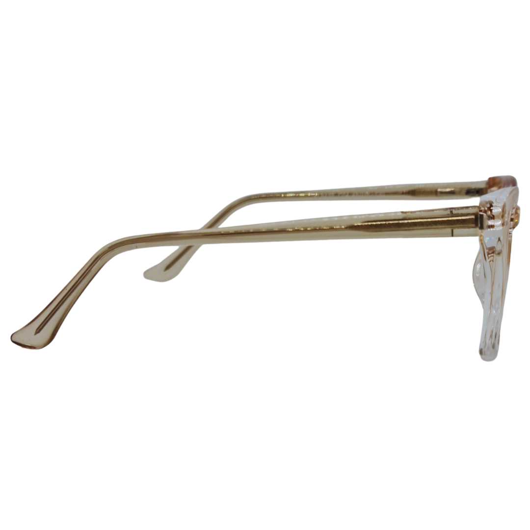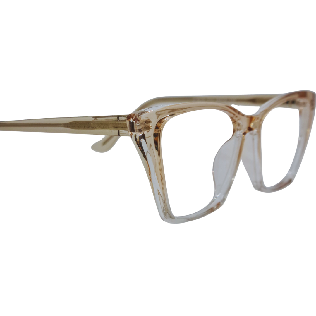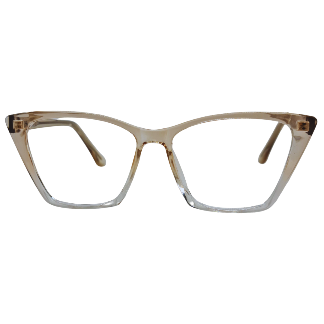 Com estrutura em acetato resistente, a armação no formato gatinho/quadrado na cor champagne traz elegância e modernidade, perfeita para quem deseja um óculos discreto e sofisticado.