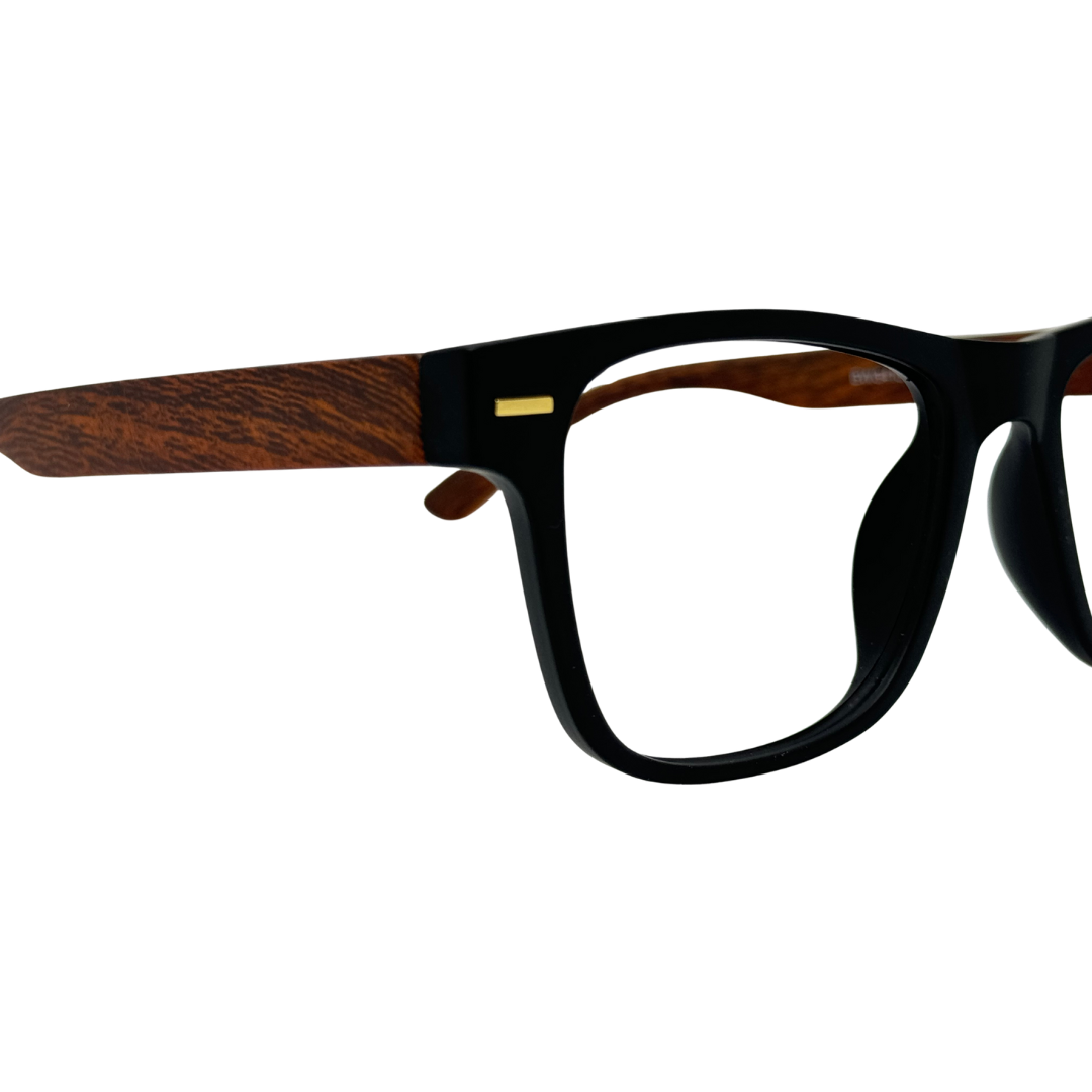 Com estrutura em acetato no formato quadrado e acabamento preto e madeira, essa armação combina sofisticação, resistência e um estilo marcante masculino.