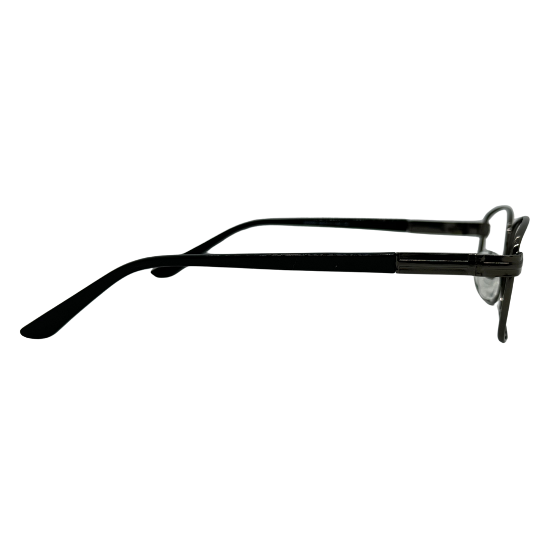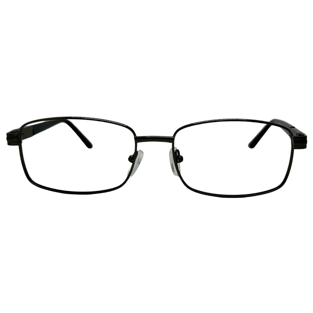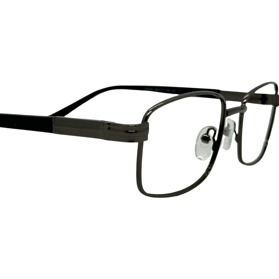 Com estrutura em metal resistente, a armação quadrada na cor cinza combina elegância e discrição, ideal para ambientes profissionais e casuais.
