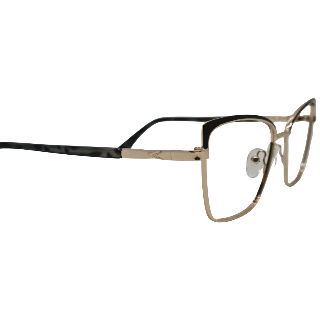 Com estrutura em metal resistente, a armação gatinho na cor dourado com preto é elegante, moderna e perfeita para quem busca feminilidade e estilo refinado.