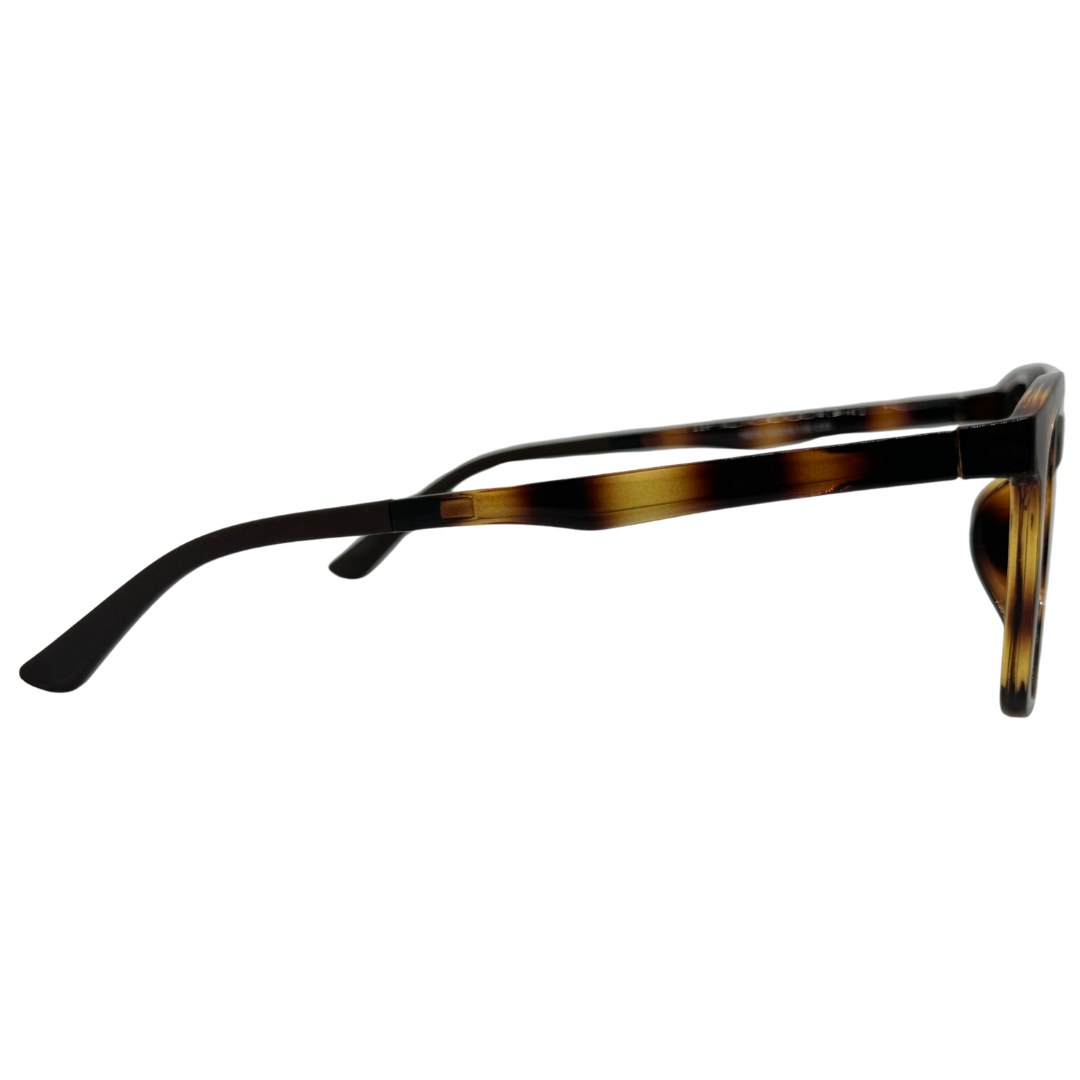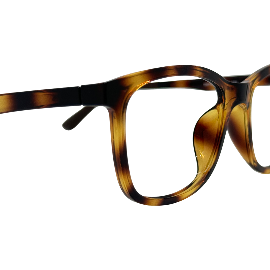 Com estrutura em acetato resistente, a armação quadrada na cor marrom tartaruga une estilo e praticidade, adaptando-se bem a diferentes formatos de rosto.